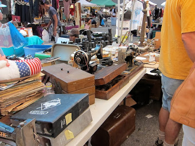 Readers, I was this close to buying a vintage Singer 401A sewing machine at the flea market yesterday. The dealer was asking $80, but I'm pretty certain he'd have taken less. It came complete with a box of slant attachments and a very nice carrying case, and it looked like such fun.