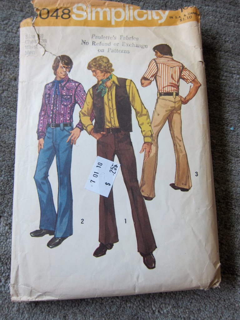 But in preparation for a piece I'm writing for the Threads blog later this month about vests, I began to dig a little deeper. I realized that in my vintage pattern stash I already owned nearly a dozen vest patterns. In the 1950's and 60's in particular, men's sports jacket patterns often had a vest pattern included in the same envelope. Occasionally they'd be combined with shirt patterns. Later on, more vest-only patterns were released, probably when men started wearing vests without jackets.