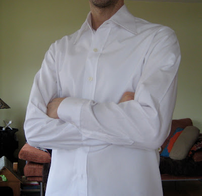 I do own a homemade white shirt -- a very nice one I whipped up last November.  I actually bought the fabric from Kashi at Metro Textiles and it's a silky white cotton.   And just look at that sleeve placket...